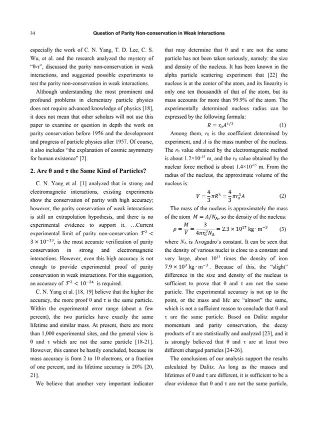 编者按:黑龙江省亚欧脑科学研究院孙作东研究员最新研究成果论文Question of Parity Non-conservation in Weak Interactions(弱相互作用中的宇称不守恒质疑),在国际物理期刊 Journal of Physical Science and Application公开发表。论文共用17个版面,对杨振宁、李政道获得诺贝尔物理学奖的论文《弱相互作用中的宇称守恒质疑》提出质疑。